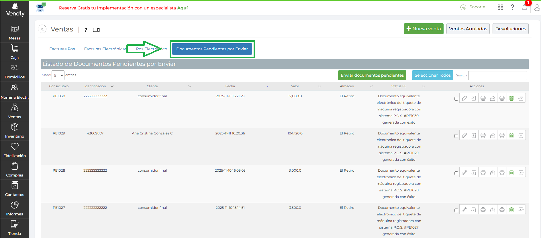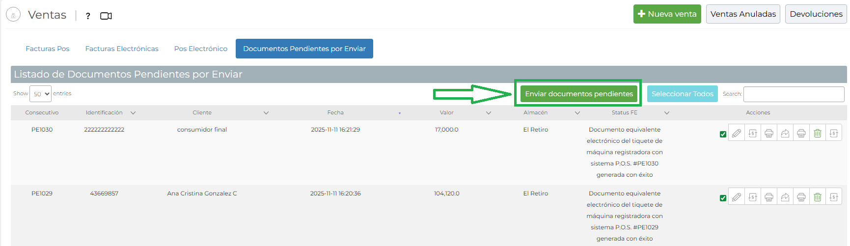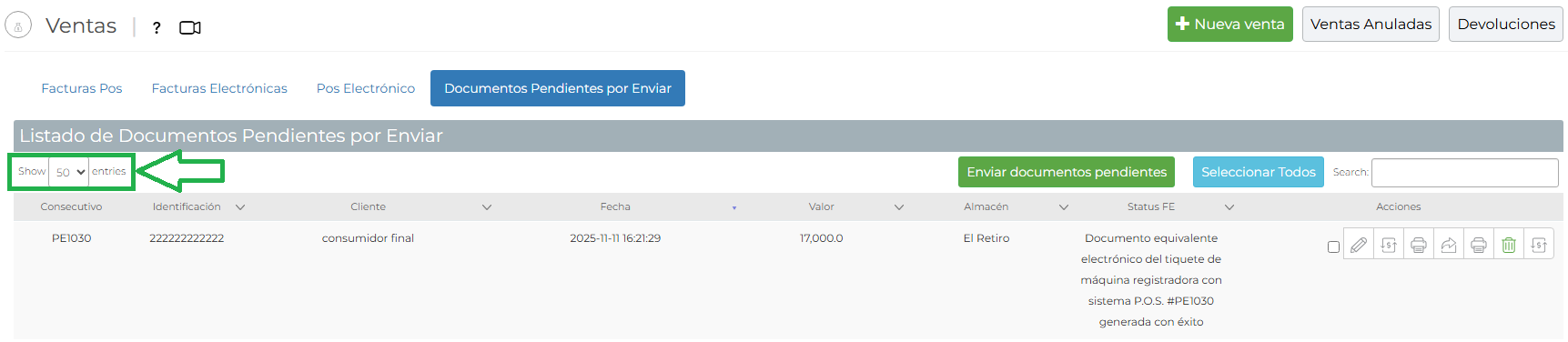 - Si la factura sale sin consecutivo debes reenviarla y validar la respuesta que aparece, si sigue sin enviar comunicarse con soporte.