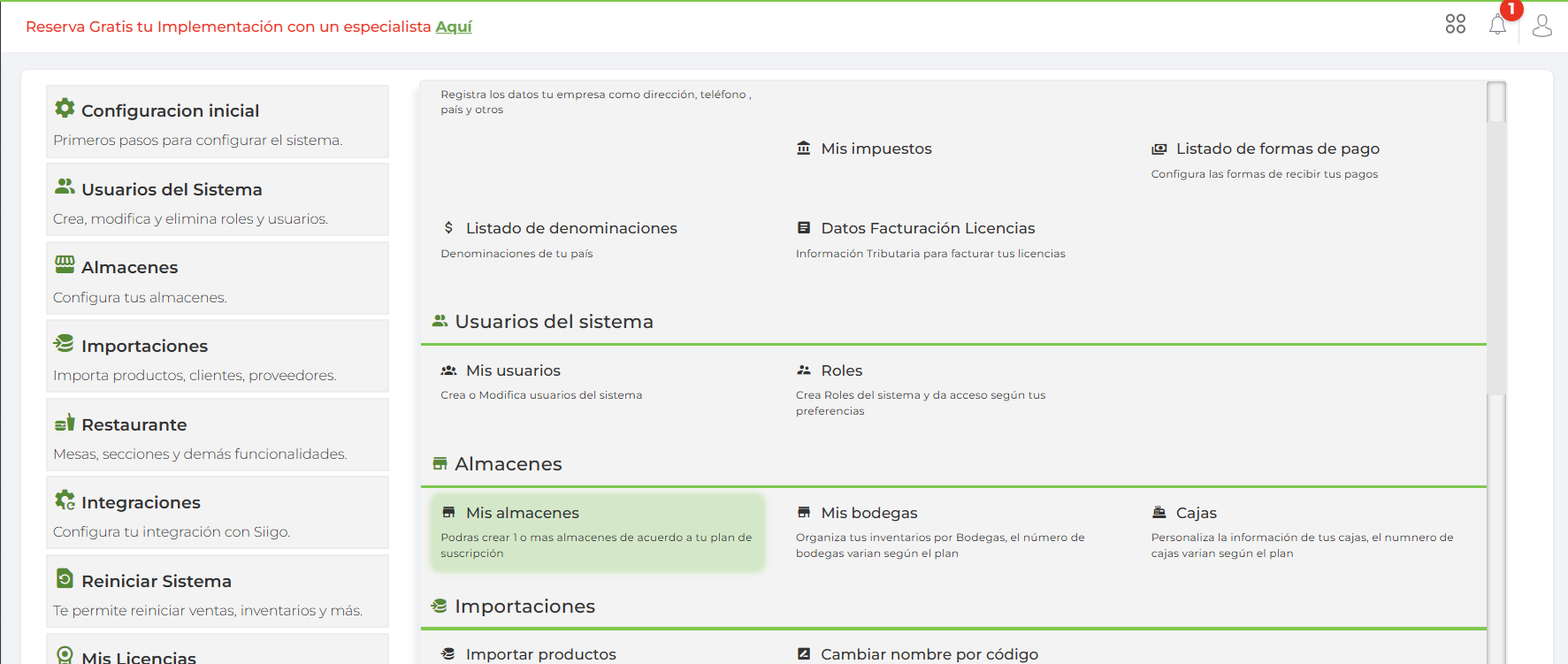 Ingrese a Configuración – Almacenes – Mis almacenes
